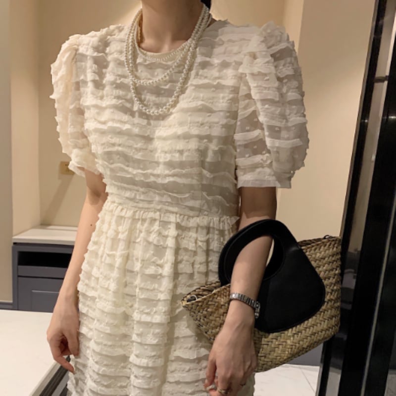【商品詳細】 バブルスリーブシフォンフリルワンピース 【サイズ】 S ウエスト:72㎝ ヒップ:124㎝ 着丈:116㎝ M ウエスト:76㎝ ヒップ:128㎝ 着丈:117㎝ L ウエスト:80㎝ ヒップ:132㎝ 着丈:118㎝ 〇測り方により1~3センチの誤差が出る場合がございます。 【カラー】 アイボリー、ブラック 【お届けについて】 ・こちらの商品は海外より直接発送となる為、 ご入金から10日~4週間ほどのお時間をいただいております。 ・配送日指定、時間指定は出来ませんので、ご了承ください。 ◼️注意事項 ・タイミングによっては商品在庫切れにより 注文キャンセルとさせていただく恐れもございますので、予めご了承くださいませ。 ・こちらは輸入品となります。日本製とは検品基準が異なる為、 新品未使用品でもごくわずかな汚れや傷がある場合もございます。 ・商品の色味は、モニター環境により実物と若干異なる場合がございます。 ・イメージ違いやサイズ交換等、お客さまご都合による交換、返品は対応出来かねます。 ご購入前にこちらをお読みください https://shop.vibliis.jp/about 管理番号:22196