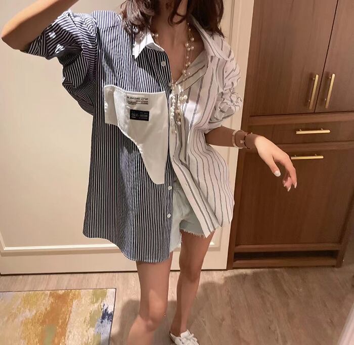【商品詳細】 アシンメトリーストライプブラウス アシンメトリーデザインのブラウス。 冷房対策や日焼け対策にも一枚あると便利。 【サイズ】 S 肩幅:36㎝ 胸囲:88㎝ M 肩幅:37㎝ 胸囲:92㎝ L 肩幅:38㎝ 胸囲:96㎝ XL 肩幅:40㎝ 胸囲:102㎝ 〇測り方により1~3センチの誤差が出る場合がございます。 【カラー】 ピンク、ブラック 【お届けについて】 ・こちらの商品は海外より直接発送となる為、 ご入金から10日~4週間ほどのお時間をいただいております。 ・配送日指定、時間指定は出来ませんので、ご了承ください。 ◼️注意事項 ・タイミングによっては商品在庫切れにより 注文キャンセルとさせていただく恐れもございますので、予めご了承くださいませ。 ・こちらは輸入品となります。日本製とは検品基準が異なる為、 新品未使用品でもごくわずかな汚れや傷がある場合もございます。 ・商品の色味は、モニター環境により実物と若干異なる場合がございます。 ・イメージ違いやサイズ交換等、お客さまご都合による交換、返品は対応出来かねます。 ご購入前にこちらをお読みください https://shop.vibliis.jp/about 管理番号:22222