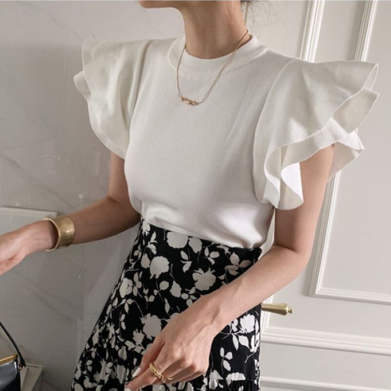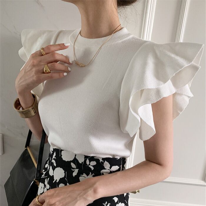 ティアードショルダーフリルニットトップス