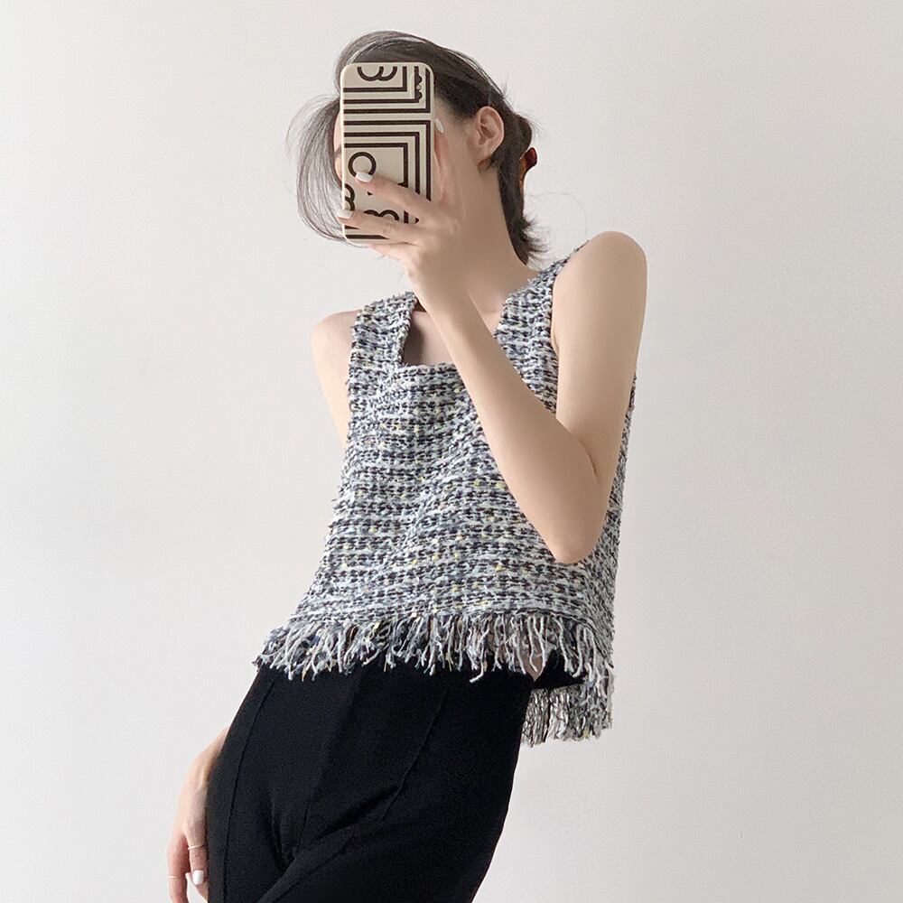 ツイードノースリーブトップス