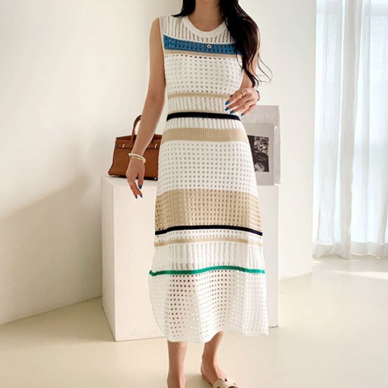 ボーダーニットロングワンピース 22258