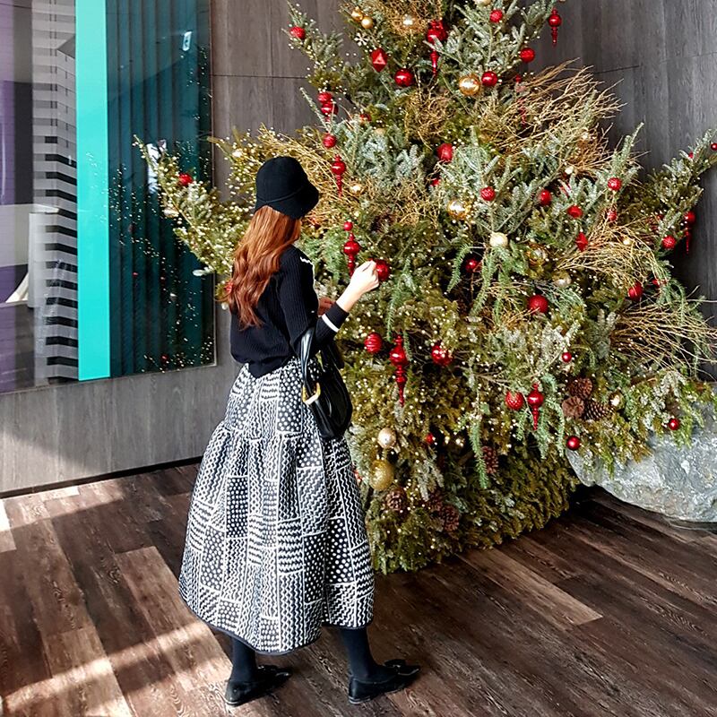 オプティカル柄ロングフレアスカート 22329