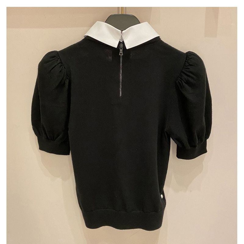 パフスリーブと短めの丈感がガーリーな大人可愛いトップスです。