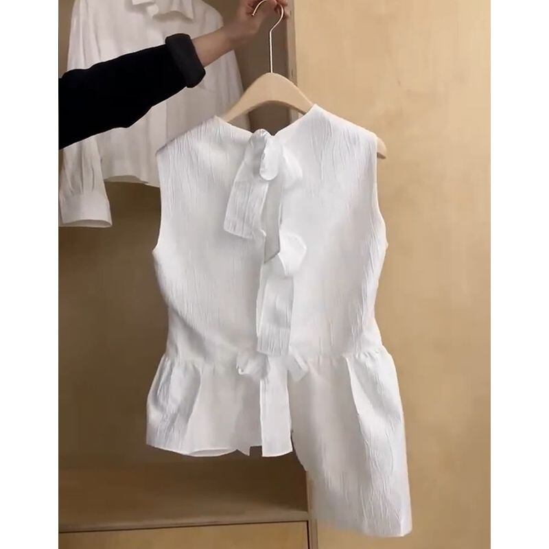【商品詳細】 バックリボンノースリーブブラウス アシンメトリーの裾がこなれ感のあるトップスです。 きれいめスタイルから大人カジュアルにも着こなせる優秀アイテムです。 【サイズ】 S 胸囲:95㎝ 着丈:60㎝ M 胸囲:99㎝ 着丈:61㎝ L 胸囲:104㎝ 着丈:62㎝ XL 胸囲:109㎝ 着丈:63㎝ 〇測り方により1~3cmの誤差が出る場合がございます。 【カラー】 ホワイト、ブラック 【お届けについて】 ・こちらの商品は海外より直接発送となる為、 ご入金から10日~4週間前後で発送となります。 ・配送日指定、時間指定は出来ませんので、ご了承ください。 ◇HOT ITEMはこちらから⇩⇩ https://shop.vibliis.jp/categories/4527211 ◇LINEお友達追加はこちらから⇩⇩ https://lin.ee/gPkREkO ◇Instagramへはこちらから⇩⇩ https://www.instagram.com/vibliis_ ◼️注意事項 ・タイミングによっては商品在庫切れにより 注文キャンセルとさせていただく恐れもございますので、予めご了承くださいませ。 ・こちらは輸入品となります。日本製とは検品基準が異なる為、 新品未使用品でもごくわずかな汚れや傷がある場合もございます。 ・商品の色味は、モニター環境により実物と若干異なる場合がございます。 ・イメージ違いやサイズ交換等、お客さまご都合による交換、返品は対応出来かねます。 ご購入前にこちらをお読みください https://shop.vibliis.jp/about
