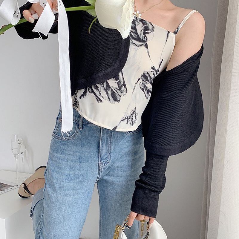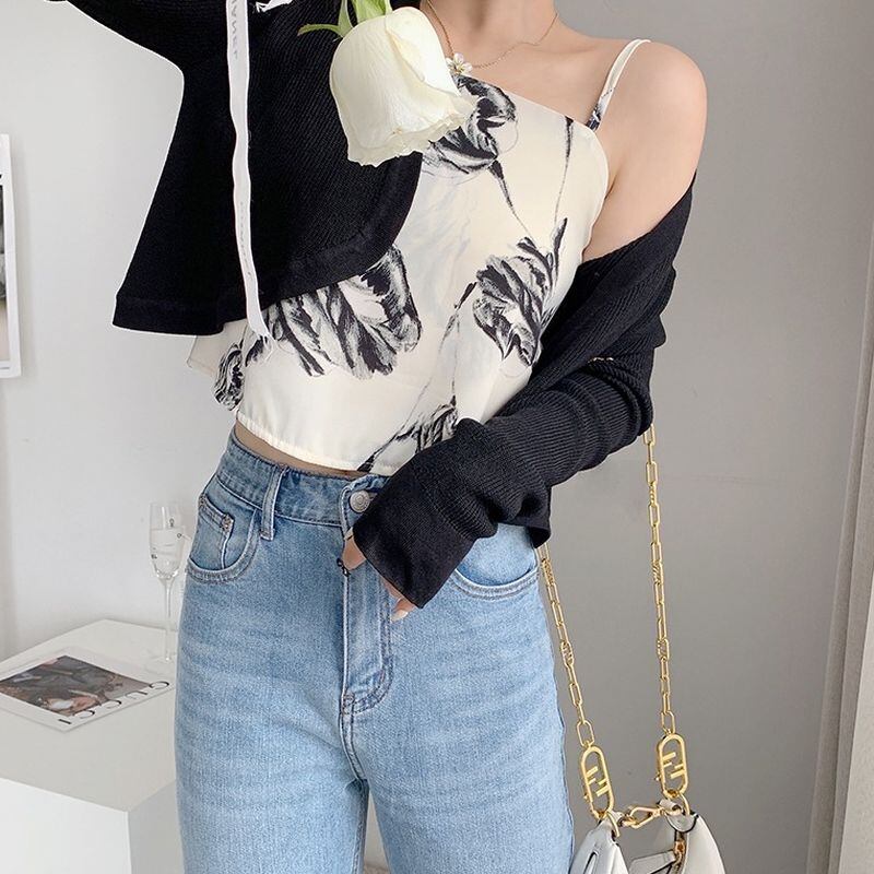 モノトーン フラワーキャミソール