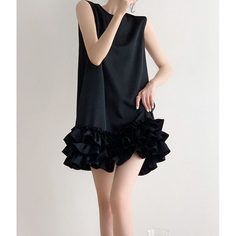 大きめの裾フリルがポイントのミニワンピースです。