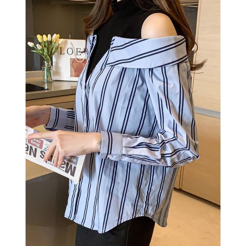 【商品詳細】 オフショルダーストライプシャツ 重ね着風のオフショルダーブラウスです。 スタイリッシュなストライプ柄で、コーディネートにも取り入れやすい一枚です。 【サイズ】 S 肩幅:35㎝ 胸囲:96㎝ 袖丈:55㎝ 着丈:66㎝ M 肩幅:36㎝ 胸囲:100㎝ 袖丈:56㎝ 着丈:67㎝ L 肩幅:37㎝ 胸囲:104㎝ 袖丈:57㎝ 着丈:68㎝ XL 肩幅:38㎝ 胸囲:108㎝ 袖丈:58㎝ 着丈:69㎝ 2XL 肩幅:39㎝ 胸囲:112㎝ 袖丈:59㎝ 着丈:70㎝ 〇測り方により1~3cmの誤差が出る場合がございます。 【カラー】 ブルー 【お届けについて】 ・こちらの商品は海外より直接発送となる為、 ご入金から10日~4週間前後で発送となります。 ・配送日指定、時間指定は出来ませんので、ご了承ください。 ◇HOT ITEMはこちらから⇩⇩ https://shop.vibliis.jp/categories/4527211 ◇LINEお友達追加はこちらから⇩⇩ https://lin.ee/gPkREkO ◇Instagramへはこちらから⇩⇩ https://www.instagram.com/vibliis_ ◼️注意事項 ・タイミングによっては商品在庫切れにより 注文キャンセルとさせていただく恐れもございますので、予めご了承くださいませ。 ・こちらは輸入品となります。日本製とは検品基準が異なる為、 新品未使用品でもごくわずかな汚れや傷がある場合もございます。 ・商品の色味は、モニター環境により実物と若干異なる場合がございます。 ・イメージ違いやサイズ交換等、お客さまご都合による交換、返品は対応出来かねます。 ご購入前にこちらをお読みください https://shop.vibliis.jp/about
