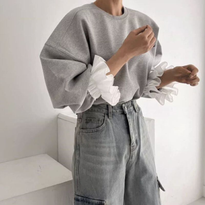 【商品詳細】 フリルカフトレーナー ゆったりとした着心地のトレーナーです。 メンズライクなシルエットながら、袖口にフリルを施した女性らしいアイテムです。 【サイズ】 S 肩幅:43㎝ 胸囲:94㎝ 袖丈:54㎝ 着丈:53㎝ M 肩幅:44㎝ 胸囲:98㎝ 袖丈:55㎝ 着丈:54㎝ L 肩幅:45㎝ 胸囲:102㎝ 袖丈:56㎝ 着丈:55㎝ XL 肩幅:46㎝ 胸囲:106㎝ 袖丈:57㎝ 着丈:56㎝ 〇測り方により1~3cmの誤差が出る場合がございます。 【カラー】 グレー、グリーン 【素材】 コットン85%、スパンデックス15% 【お届けについて】 ・こちらの商品は海外より直接発送となる為、 ご入金から10日~4週間前後で発送となります。 ・配送日指定、時間指定は出来ませんので、ご了承ください。 ◇HOT ITEMはこちらから⇩⇩ https://shop.vibliis.jp/categories/4527211 ◇LINEお友達追加はこちらから⇩⇩ https://lin.ee/gPkREkO ◇Instagramへはこちらから⇩⇩ https://www.instagram.com/vibliis_ ◼️注意事項 ・タイミングによっては商品在庫切れにより 注文キャンセルとさせていただく恐れもございますので、予めご了承くださいませ。 ・こちらは輸入品となります。日本製とは検品基準が異なる為、 新品未使用品でもごくわずかな汚れや傷がある場合もございます。 ・商品の色味は、モニター環境により実物と若干異なる場合がございます。 ・イメージ違いやサイズ交換等、お客さまご都合による交換、返品は対応出来かねます。 ご購入前にこちらをお読みください https://shop.vibliis.jp/about
