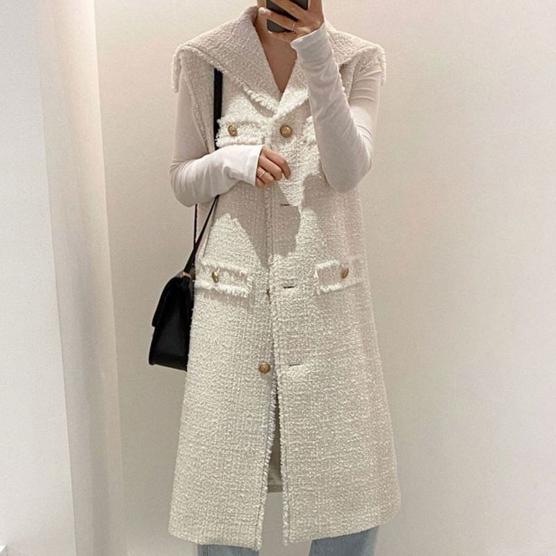 ツイード生地で落ち着いた大人っぽい印象のコートです。