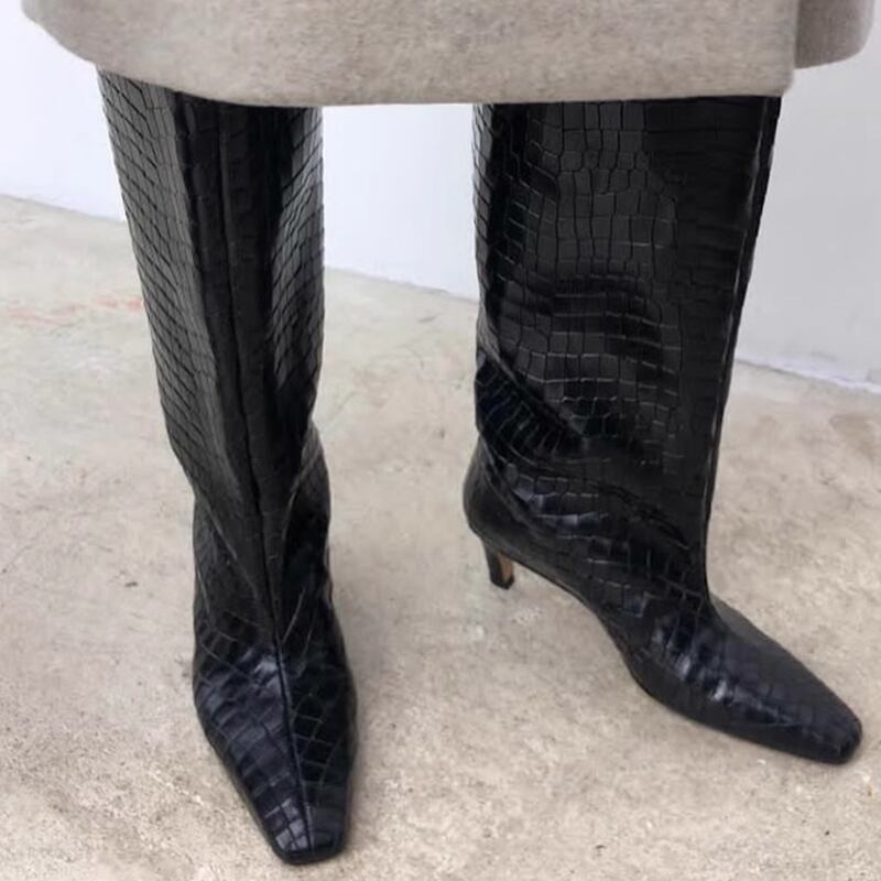 上品なクロコダイルパターンながらシンプルなディティールで主張しすぎず、コーデを格上げしてくれるブーツです。
