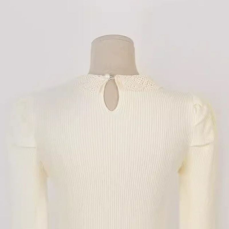 レースカラーパフスリーブニット