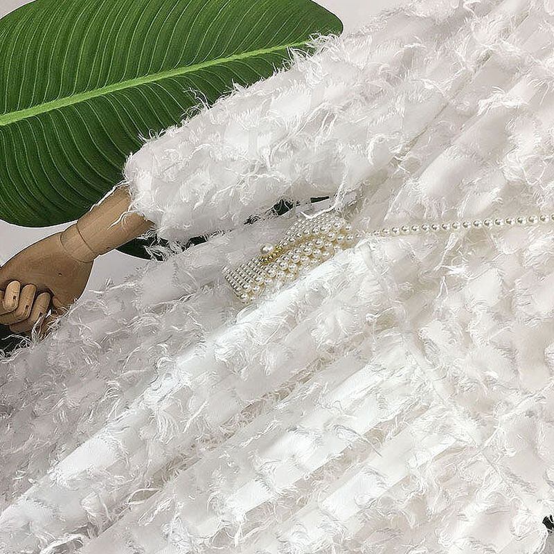 ふんわりとしたフリンジが大人可愛いワンピースです。