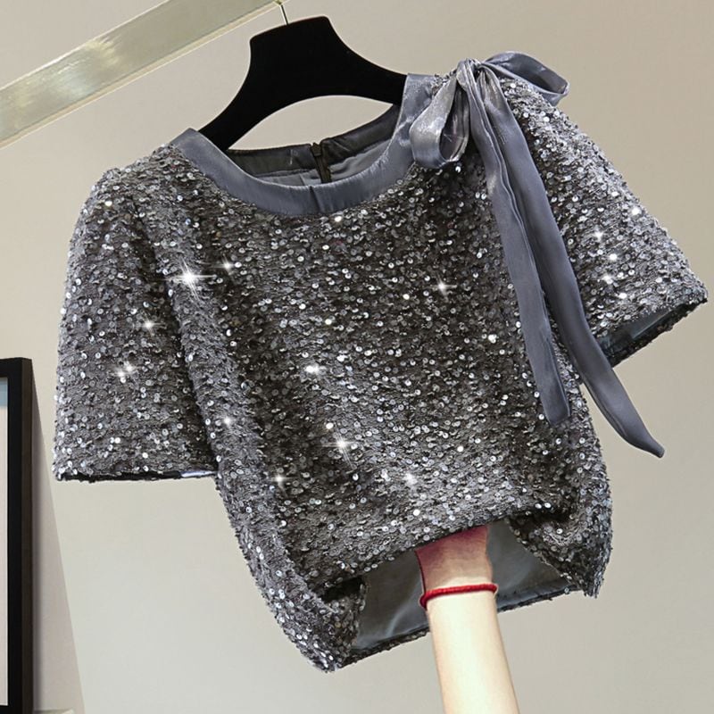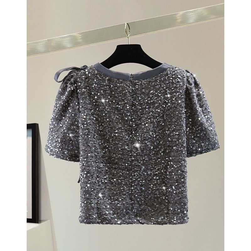 キラキラとしたスパンコールを施した高級感溢れるトップスです。